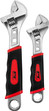 Soft cushion grips with ergonomic shape Set includes 8" and 10" adjustable wrenches Lifetime warranty Precision SAE and metric rule on wrench heads Jaw capacities: 8" - 15/16" (24mm); 10" - 1 3/32" (28mm) Machine polished finish and drop forged for long life
