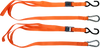 1" wide x 6' long 2400 lb test nylon webbing, 580 lb working load rating Cam buckle design allows for easy operation Heavy duty vinyl coated 3/8" diameter "S" hooks protect paint and chrome "S" hooks can be attached to tubing up to 1.4" in diameter Sold in pairs