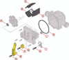 Contains: A. Small O-ring, B. Button flapper - 2 qty, C. Flapper - 2 qty, D. 6 x 5/16 sheet metal screw, E. Arm, F. 6 x 1/2 sheet metal screw, G. Link, H. #6 x 1/2 machine screw, I. Clamp, J. #6-32 nut w/ insert, K. Large O-ring.