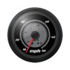 This four-inch, backlit, analog gauge displays up to 100 KMH and 50 MPH. It features a crisp faceplate design, and comes in either a chrome bezel with black, silver or white faceplates, or a black bezel with a black faceplate.