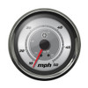 This four-inch, backlit, analog gauge displays up to 100 KMH and 50 MPH. It features a crisp faceplate design, and comes in either a chrome bezel with black, silver or white faceplates, or a black bezel with a black faceplate.