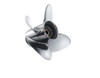 This stainless-steel, 4-Blade propeller provides stronger hole shot than comparable 3-blade propellers. Excellent on mid-range powered flats boats or on applications requiring high engine mounting heights. Fits F70 to VF115, T50/T60 K series (4.25") gearcases. Standard Shift Dampener System (SDS).