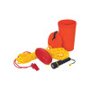 This essential kit includes key items to enhance your water safety measures, featuring a sound signaling device, a 50' floating line with a safety float, a watertight flashlight, and an airtight storage/ bailing container.
