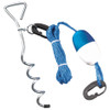 Simply work the stake into the ground and attach the 15' of rope to your craft.