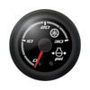 This two-inch, backlit, analog gauge monitors outboard water pressure in PSI, to alert you to possible overheating. It features a modern faceplate design, and comes in either a chrome bezel with black, silver or white faceplates, or a black bezel with a black faceplate.